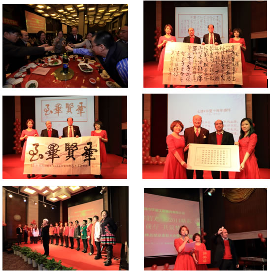 总结大会结束后,迎春团年晚宴开始。公司特邀深圳市造价师协会前任会长陈广言出席。晚宴上,为答谢陈会长对华夏的厚爱,回应陈会长在华夏开业之初所赠诗词,李董赋诗一首并现场朗诵,赢得了阵阵喝彩。晚宴中穿插的抽奖环节高潮迭起,精彩的节目让大家赏心悦目。